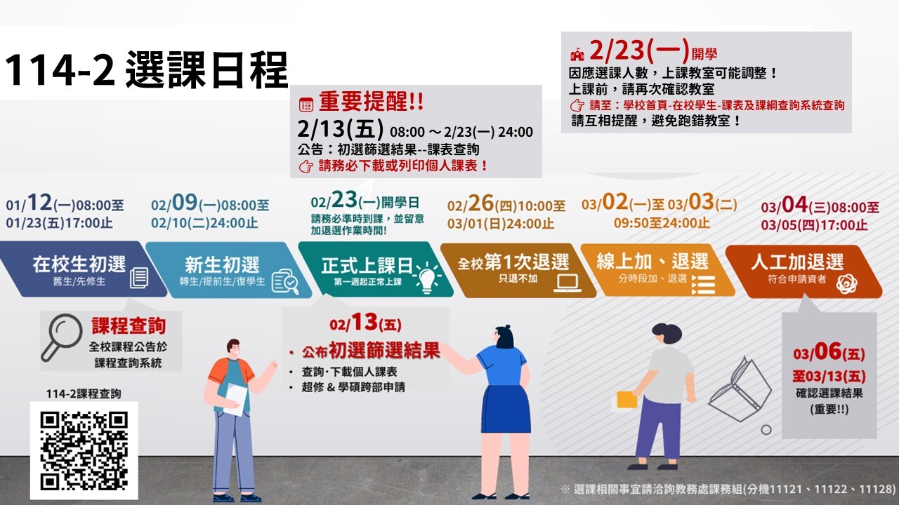 【課務通知】114學年第2學期選課日程及注意事項