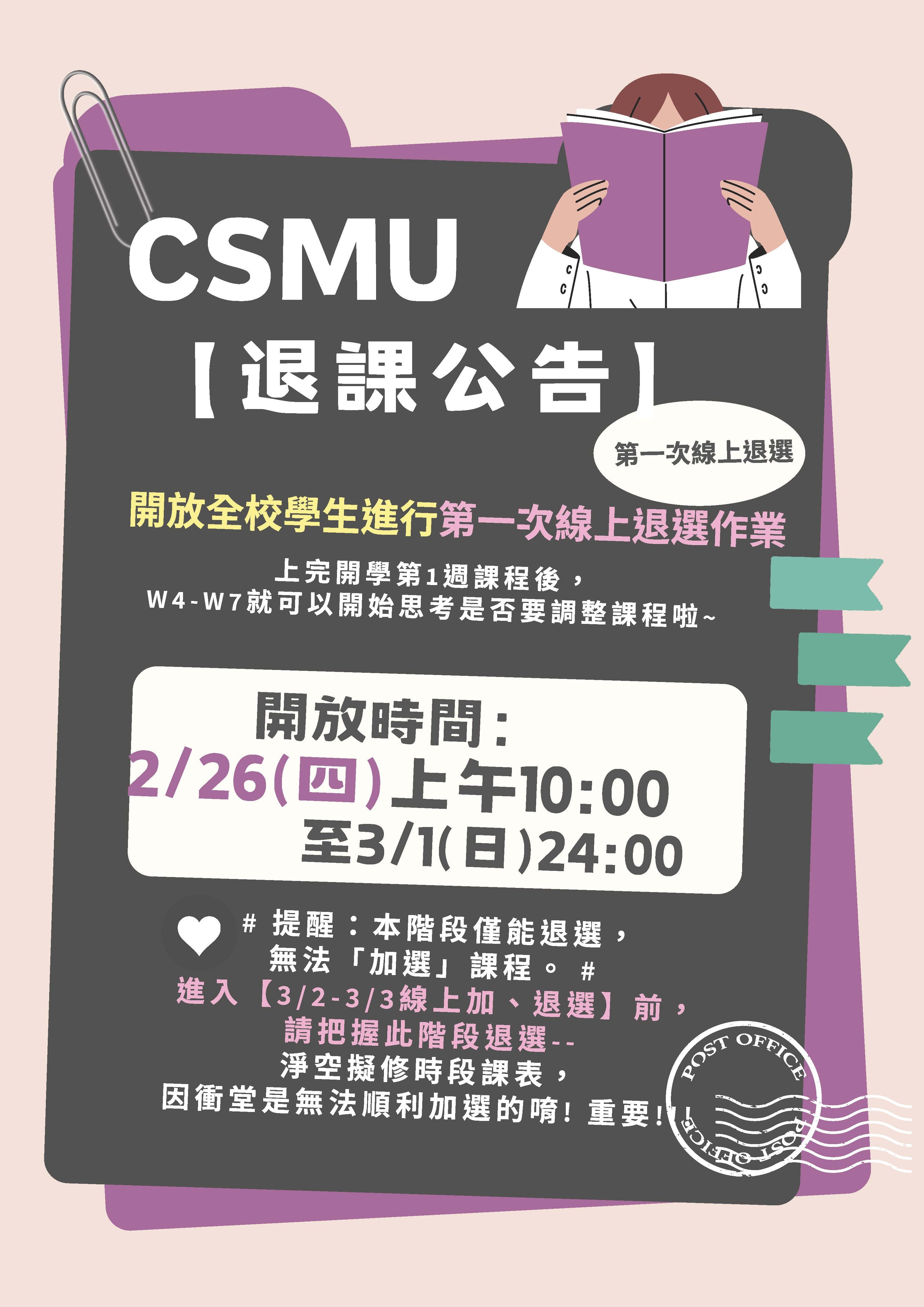 【選課公告】2月26日至3月1日開放「第一次線上退選」